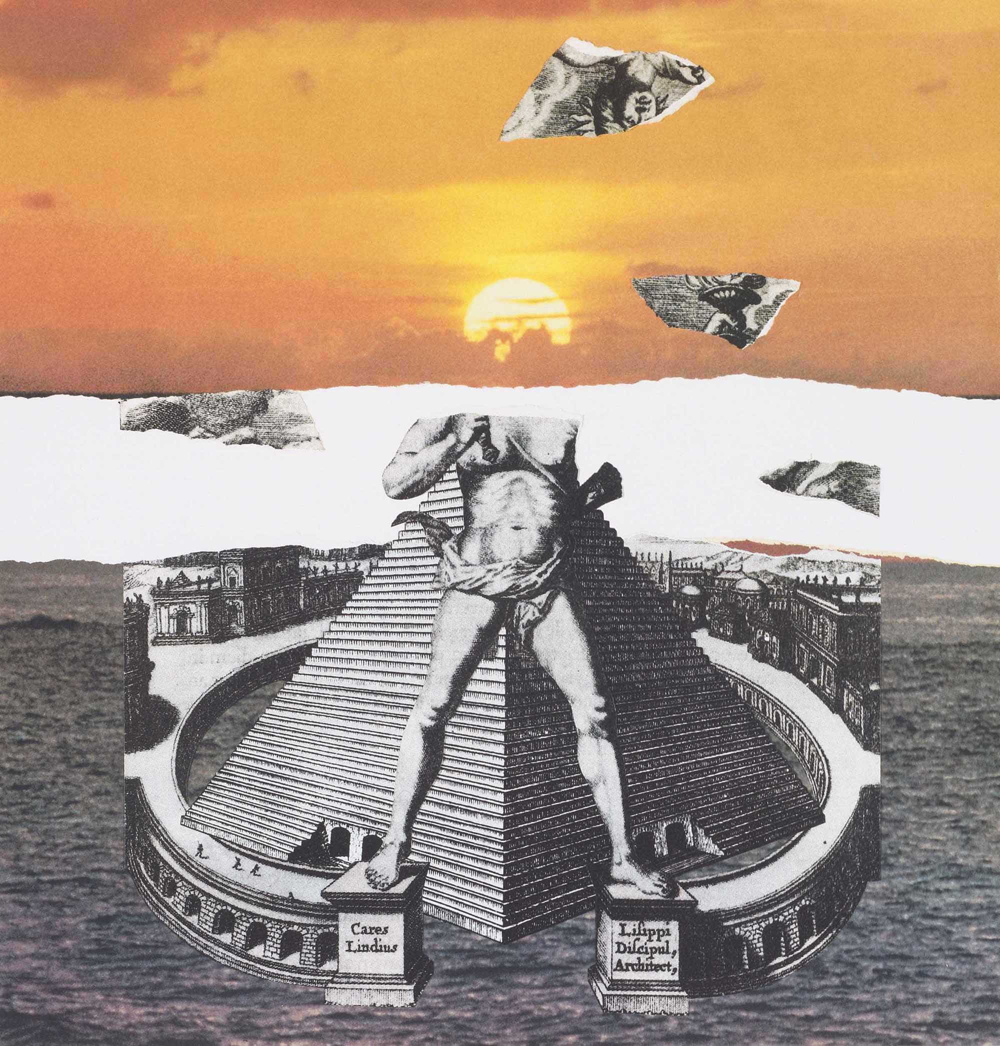 Athanasius Kircher, Turris Babel (Amsterdam: Jansson-Waesberg, 1679), book 2, section 3, chapter 1, p. 67 (”Barbara Pyramidum fileat miracula Memphis Mortialis”), and chapter. IX, p. 89 (”Colossus Solis apud Rhodios”).