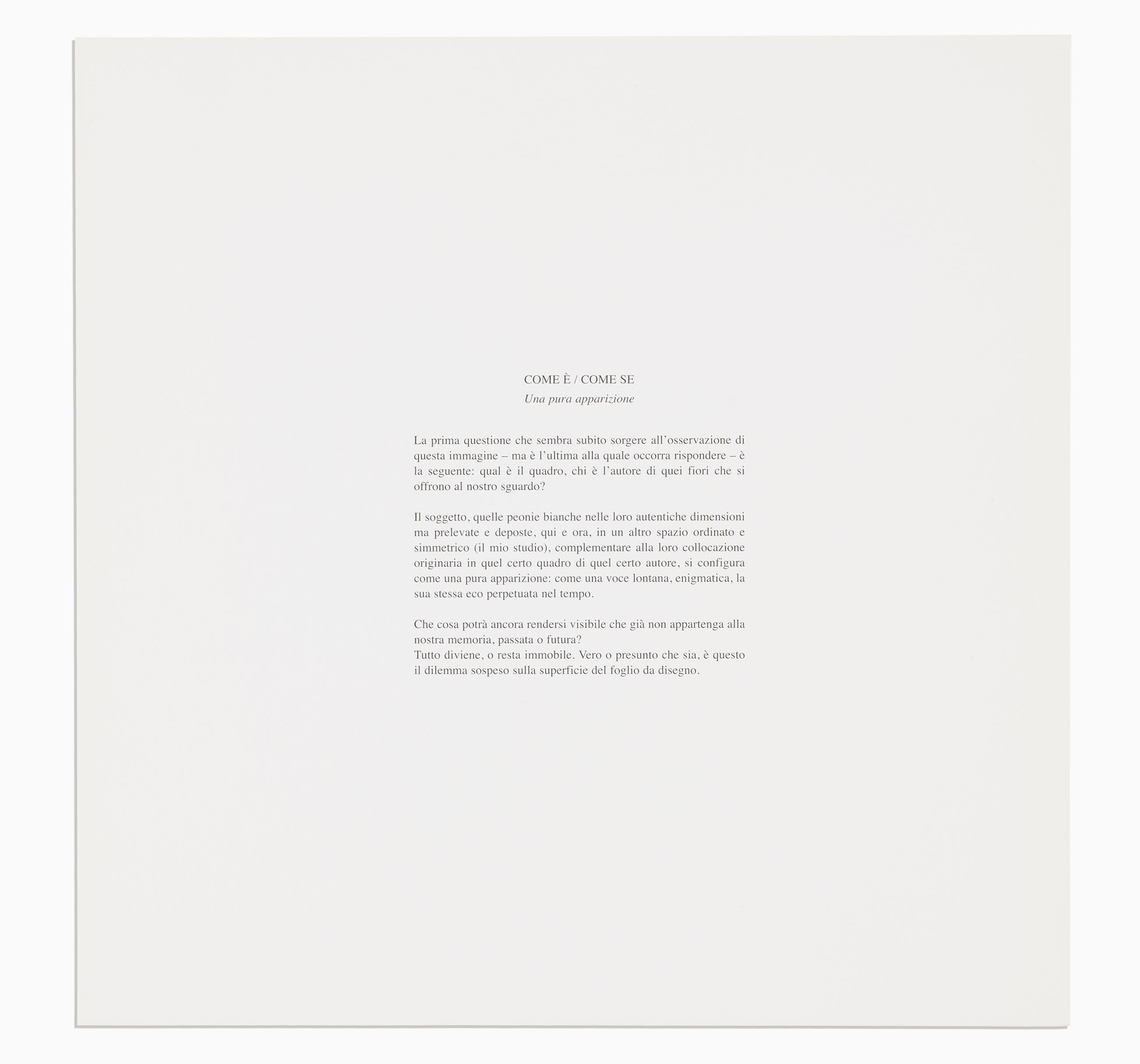 Scritto dell’artista, Come è / Come se. Una pura apparizione, riferito al soggetto dell’edizione.