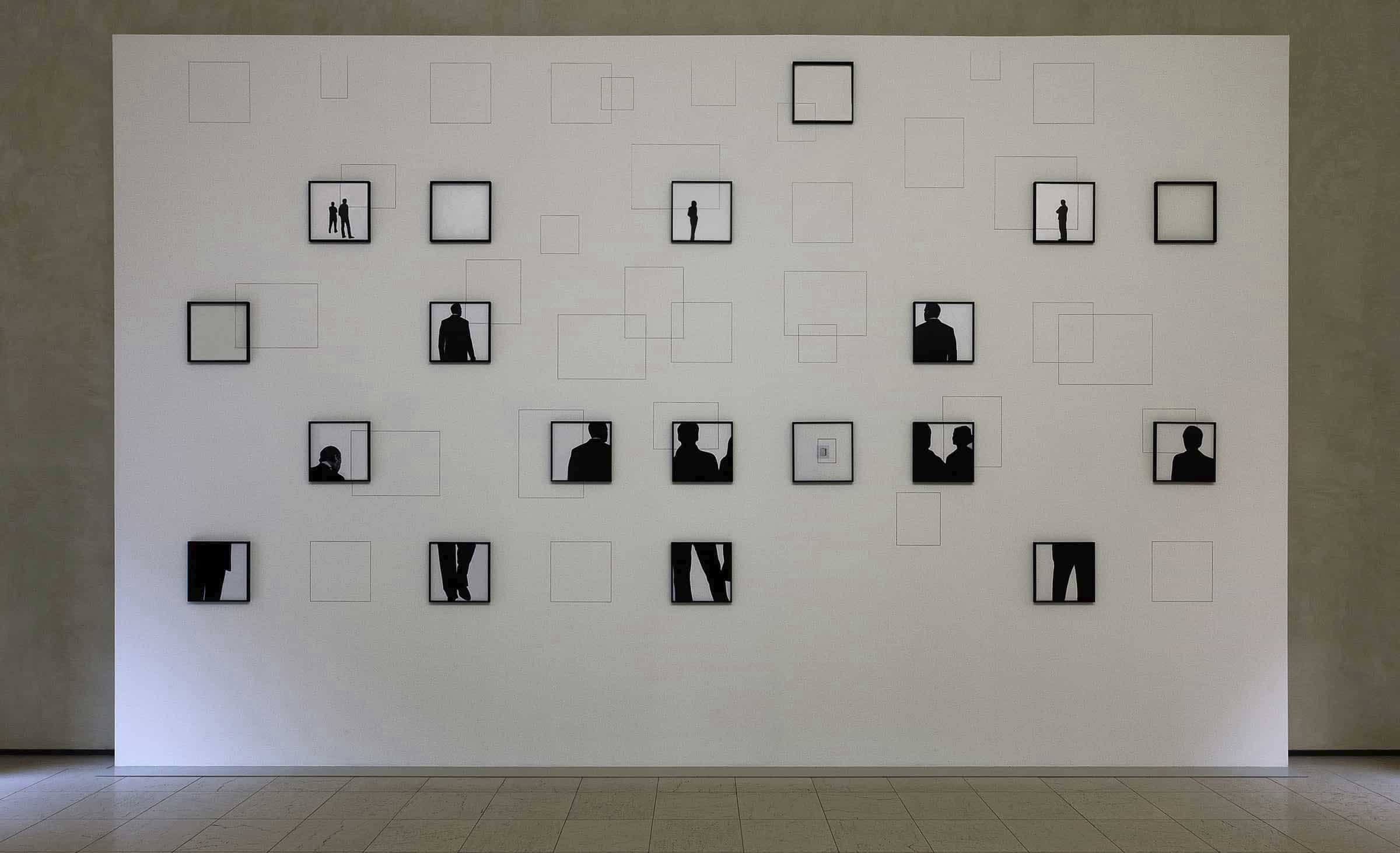 Diciannove elementi incorniciati 41 x 41 cm ciascuno, misure complessive variabili