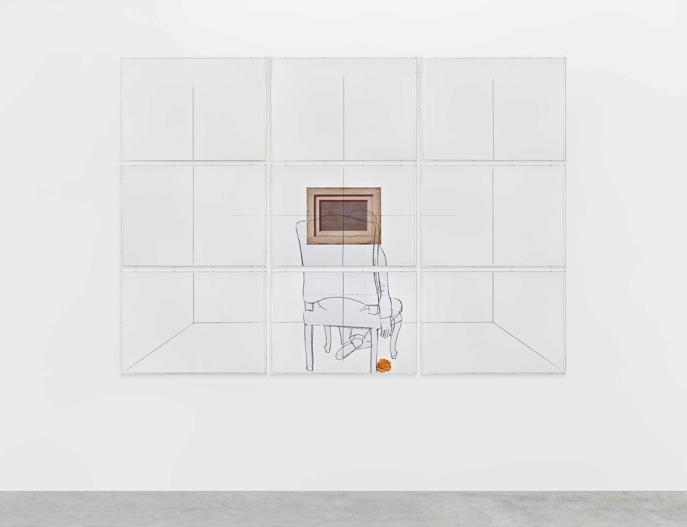 Nove teche 70 x 100 cm ciascuna, misure complessive 220 x 310 cm