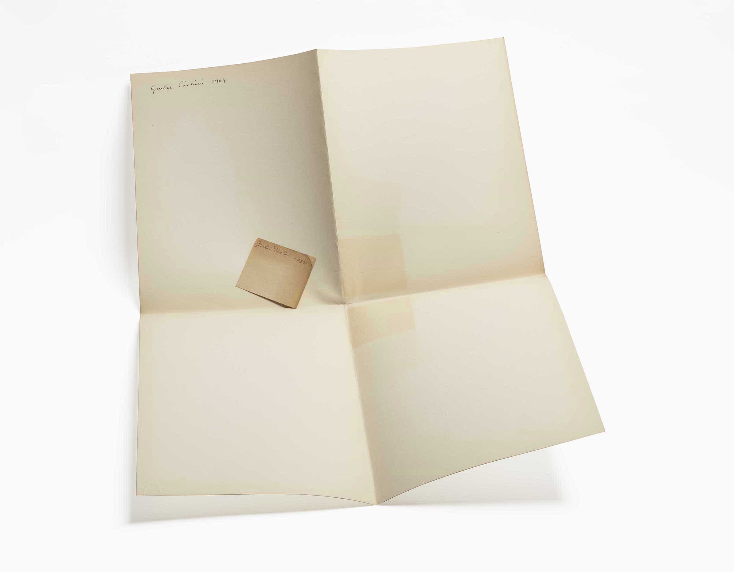 Signed and dated on the recto of the sheet of drawing paper, upper left: “Giulio Paolini 1964”