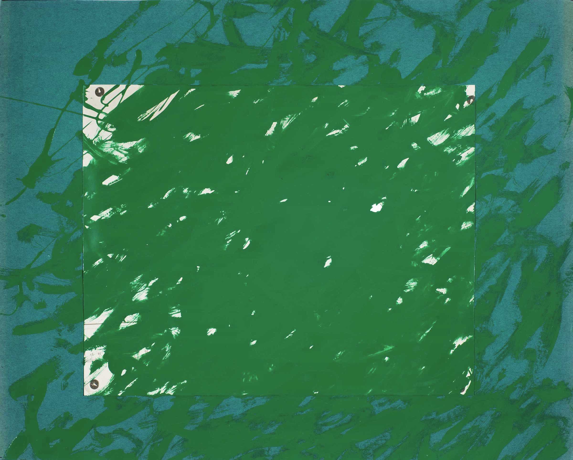 Green enamel on photo print applied to green paper