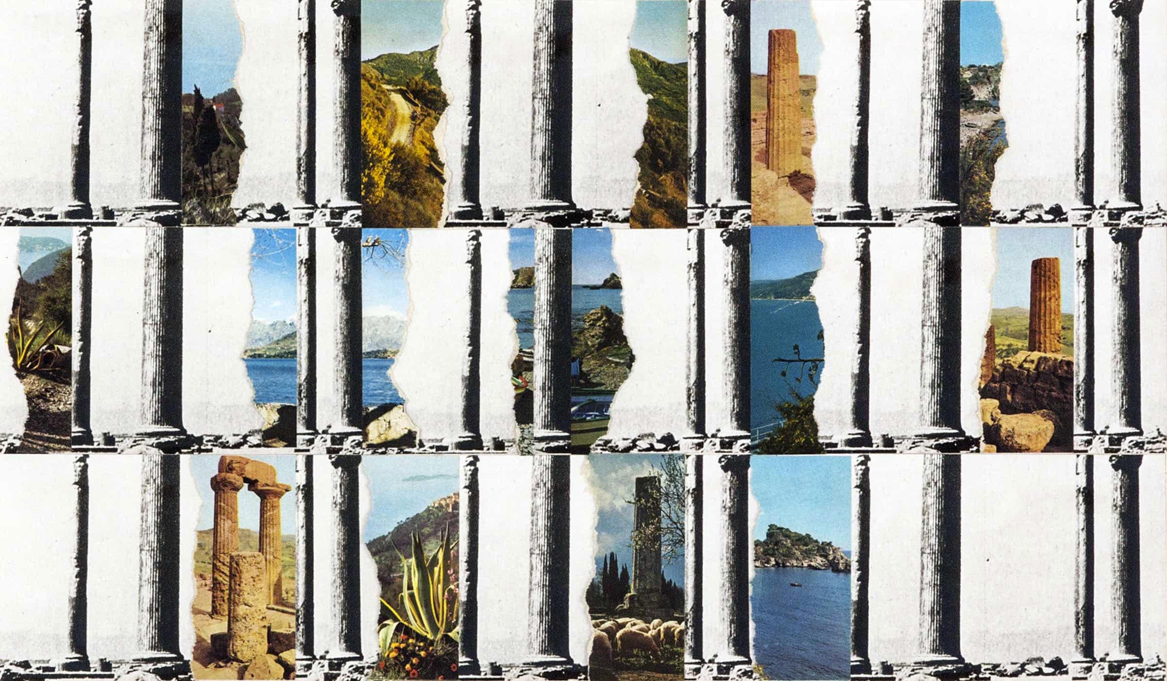 Black and white columns: image from a printed page with the caption “Shiraz: le rovine di Persepoli”.