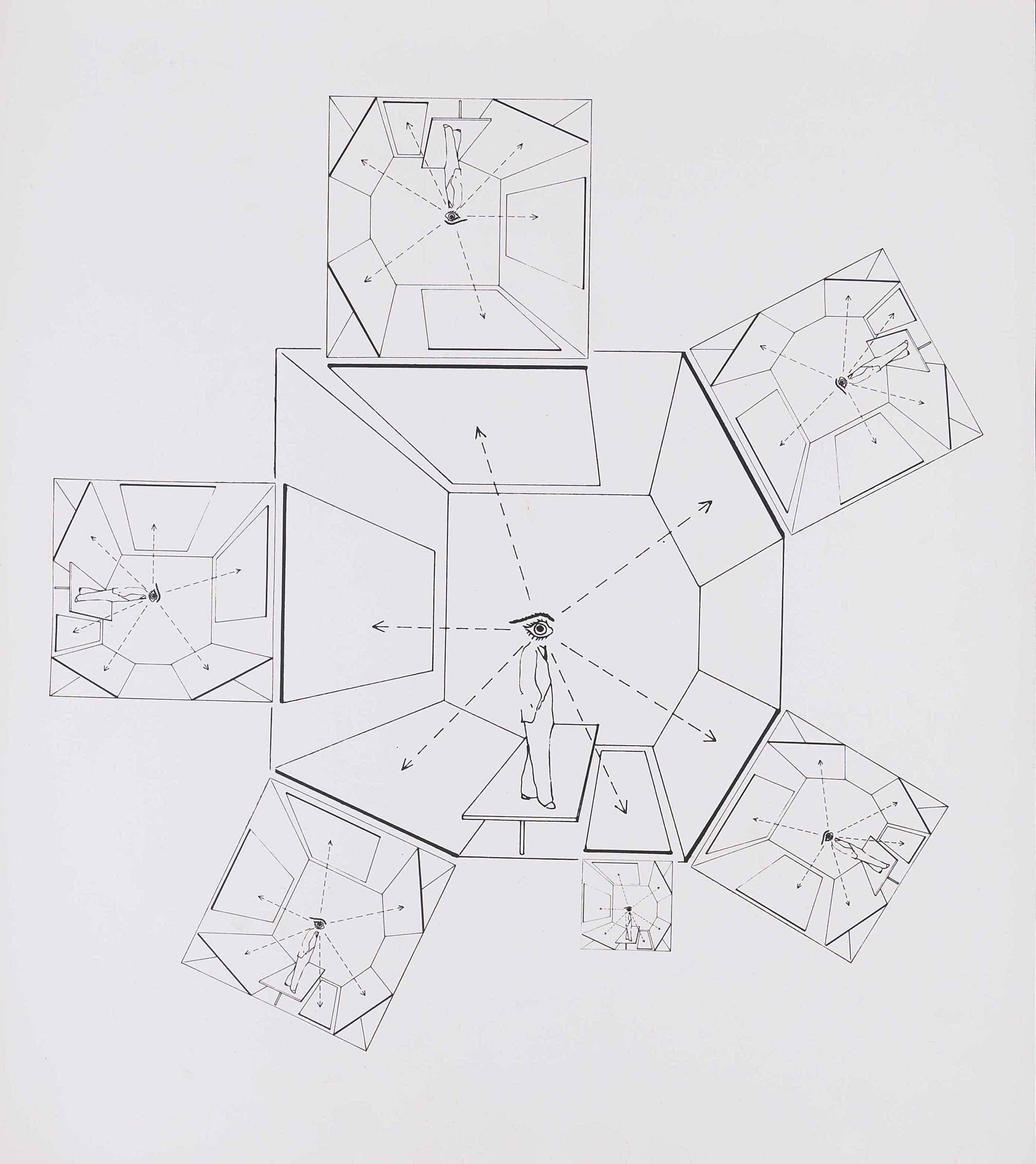 Image from Michael Brawne, Il museo oggi. Architettura Restauro Ordinamento (Milan: Edizioni di Comunità, 1965), p. 181 (Herbert Bayer, “Diagramma di un’esposizione”, 1939).