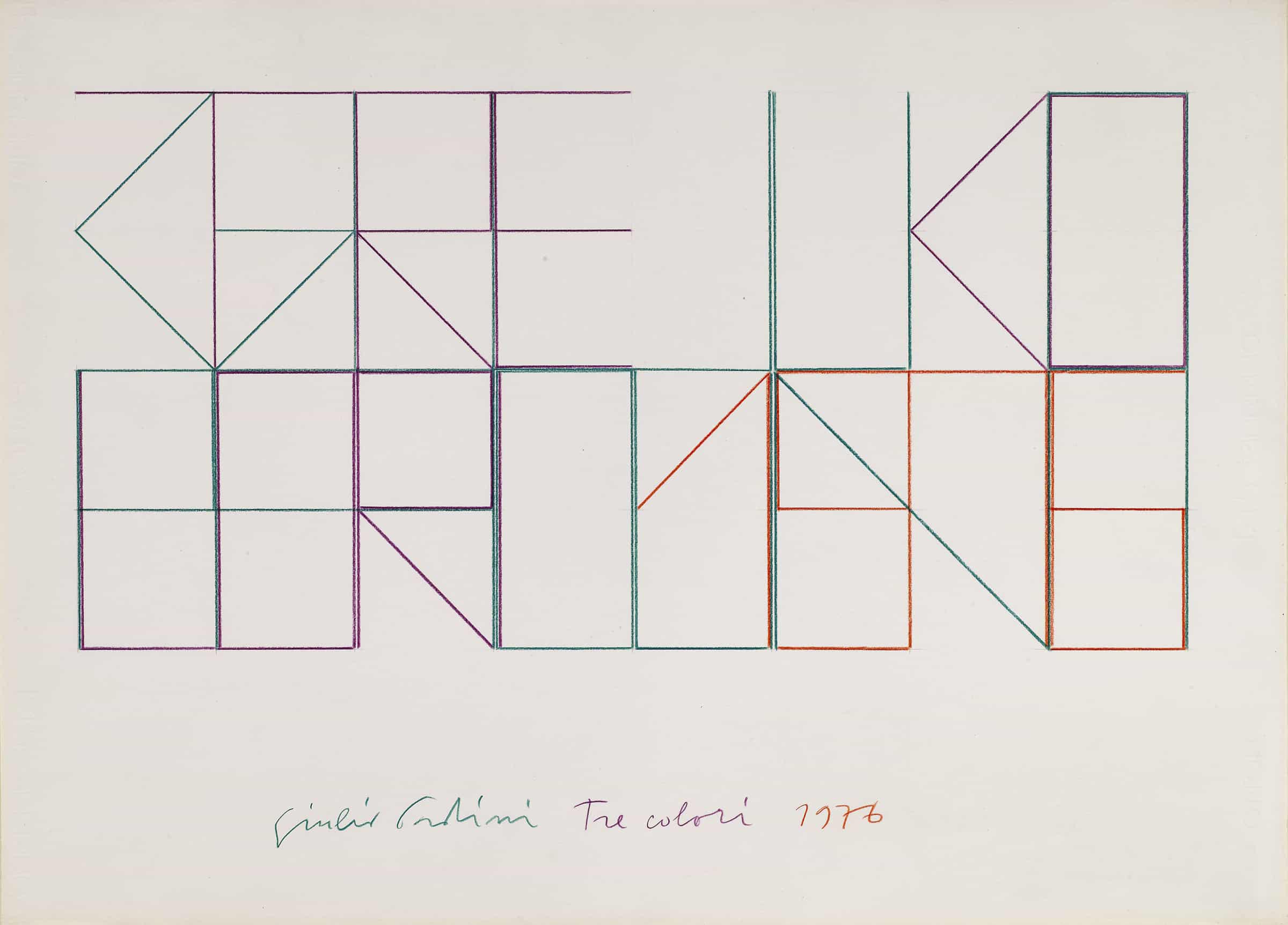 Signed, titled, and dated on the recto, bottom centre: “Giulio Paolini Tre colori 1976”