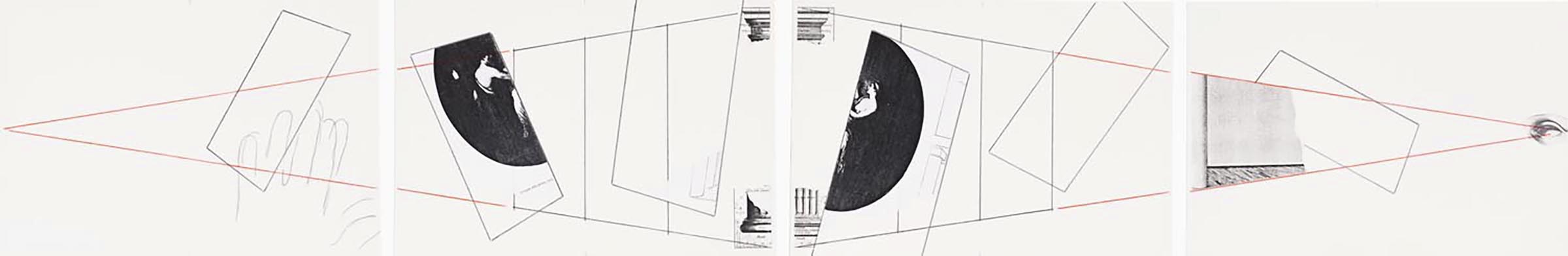 Described, signed, and dated on the verso of the fourth element, centre: “progetto per 8 pagine / della rivista “AEIUO”, n. 3 / Giulio Paolini / 1981”