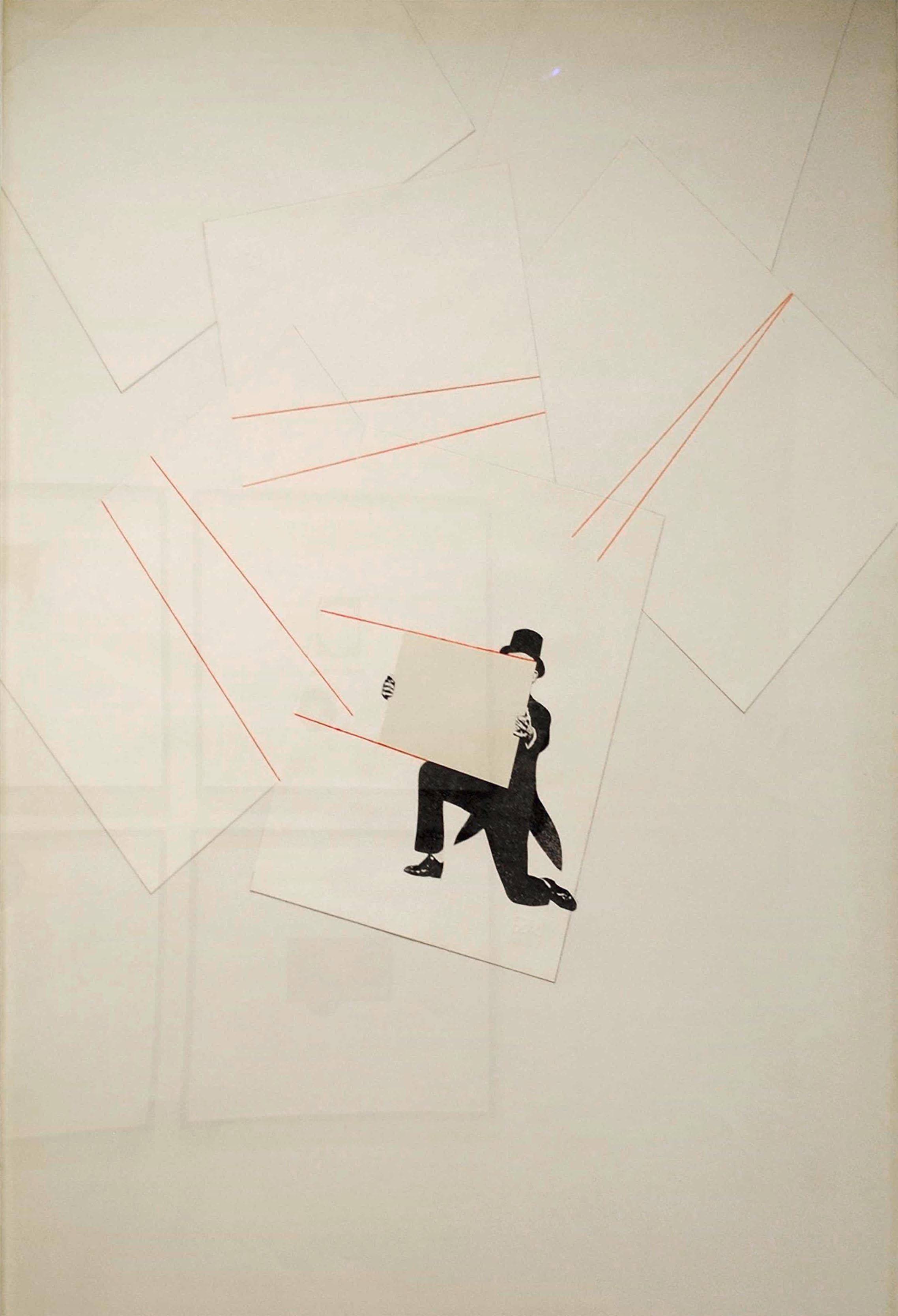 Red pencil and collage on paper