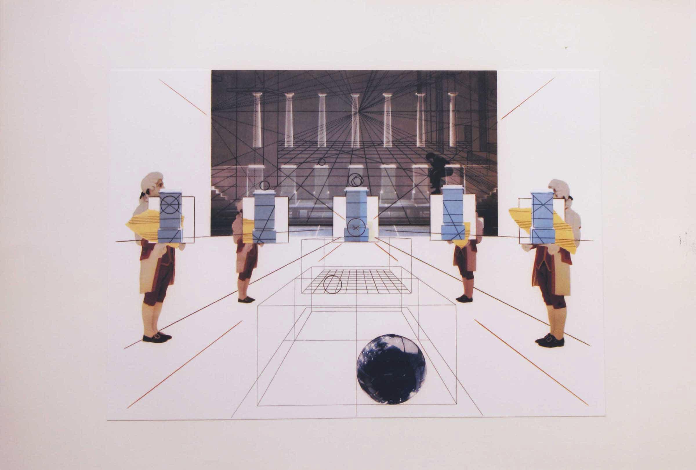 • Perspective drawing in the background: Jan Vredeman de Vries, Perspective (Leiden-The Hague: Beuckel Nieulandt for Hendrick Hondius, 1604-05); reproduction from Jan Vredeman de Vries, Perspective (New York: Dover Publications, 1968), n. pag.