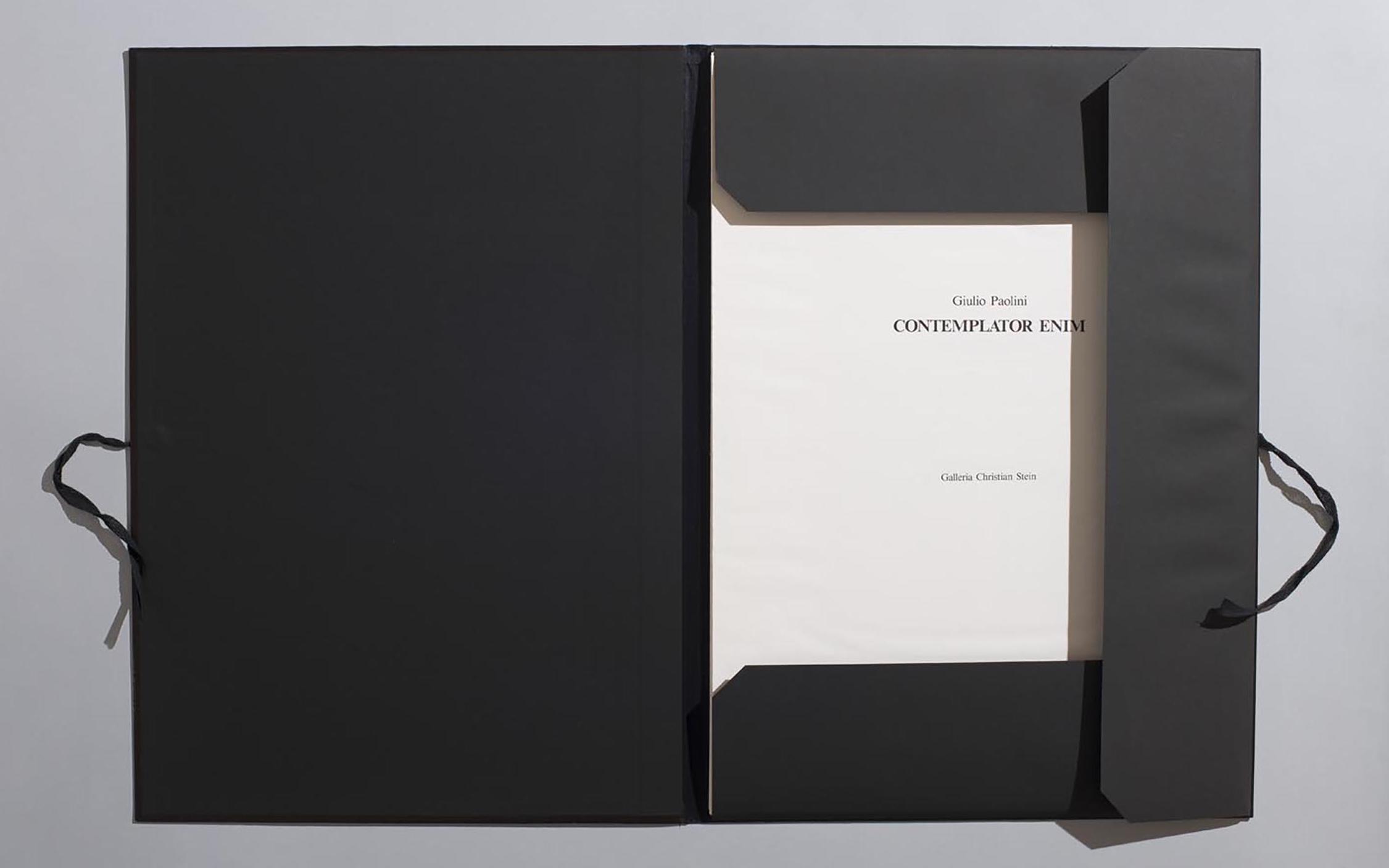 The portfolio was produced by the Galleria Christian Stein, Milan-Turin in association with the publication of Paolini's book with the same title and the same contents. In the book, divided into seven chapters, the plates are accompanied by the writings, while in the portfolio the seven loose plates are accompanied by a bi-folio with the texts. The title Contemplator enim represents a specific theme developed by the artist in 1991, which was also expressed in another work commissioned from the artist by Christian Stein for the garden of her Milanese home during the same months (cf. GPO-0684).