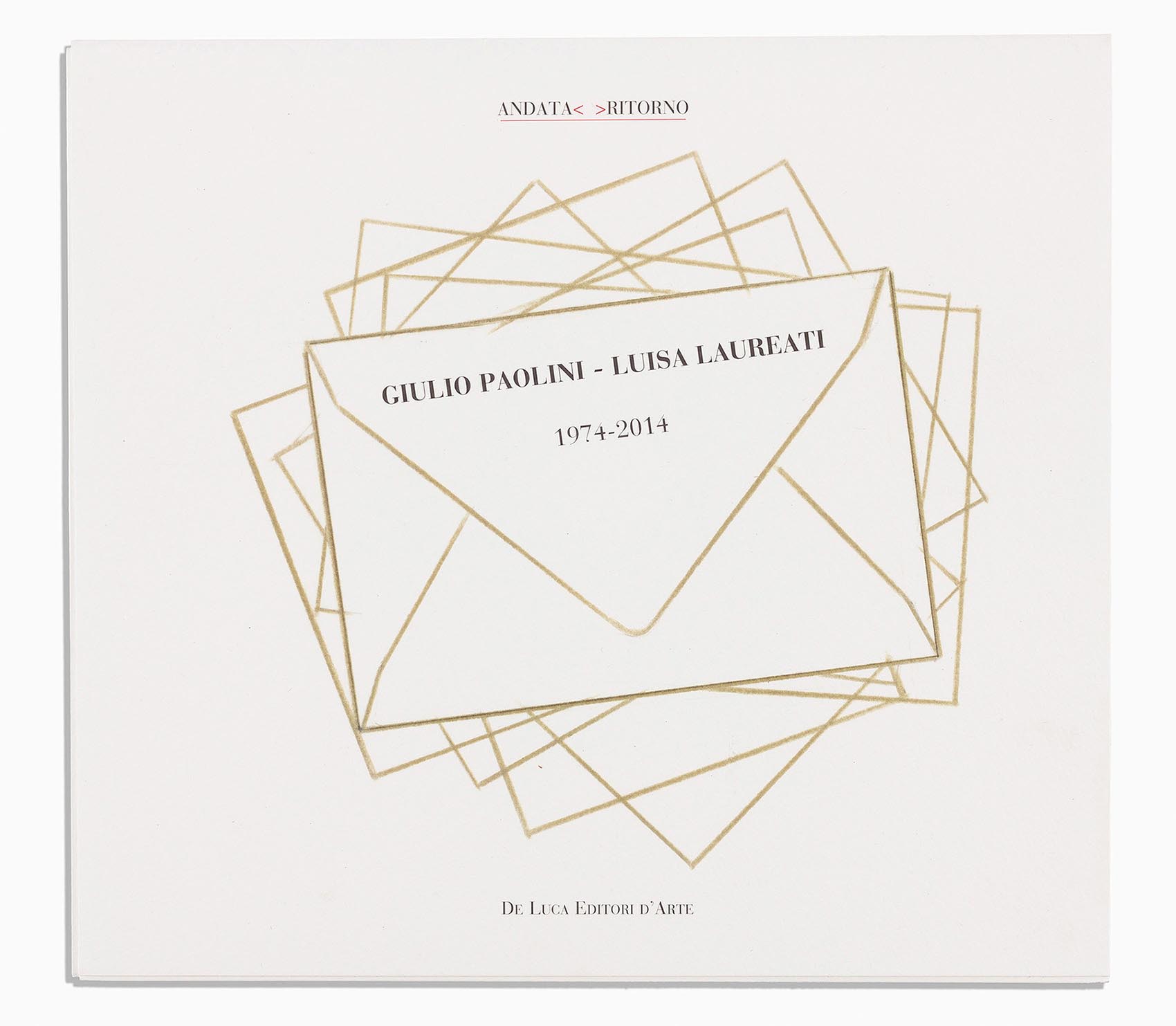 Corrispondenza tra Giulio Paolini e Luisa Laureati, edited by Barbara Cinelli (Rome: De Luca Editori d'Arte, 2014). Andata <> Ritorno series, no. 1, 29 x 32 cm, 27 loose sheets collected in a folder with four flaps, cover design by the artist. Reproduction of letters between Giulio Paolini and Luisa Laureati, as well as of homages by the artist for his friend from 1974-2014, text by Barbara Cinelli, transcription of the correspondence between Paolini and Laureati 1968-2014, b/w and colour illustrations. Limited edition of 250 numbered copies, of which 105 include the folded print edition.