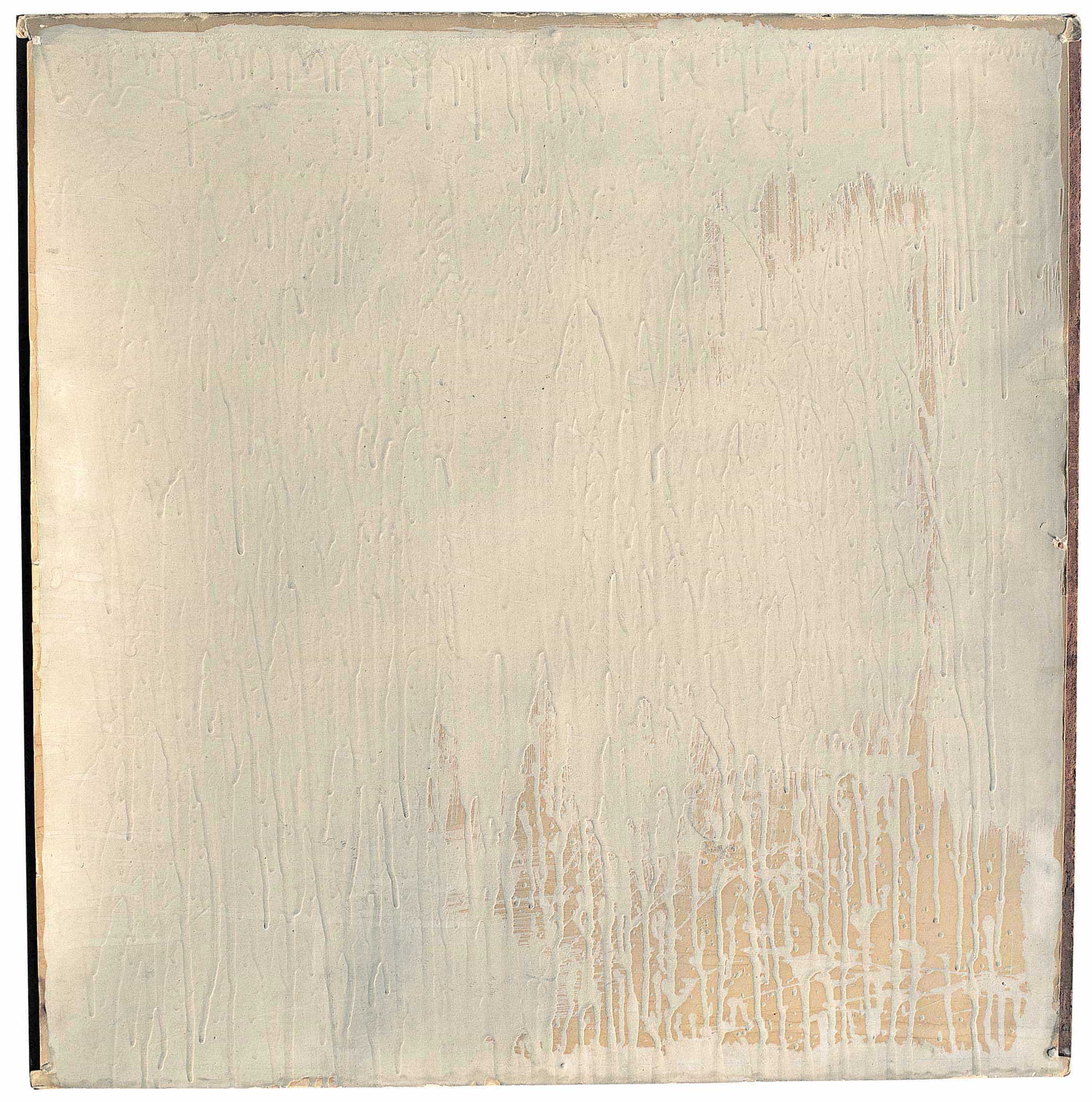 In the artist's words: “The image of the painting consists of the very elements that comprise it: I start out from a certain rigid surface and I cover it with another material that is suited to receiving some visible graphic marks, and this material does not erase the support on which it is laid but, rather, is deliberately shaped in order to discover a detail of it, and little by little also the addition of subsequent elements respects the presence of others previously manipulated. […] The image wished for over these materials is none other than the correct presentation of the materials themselves" (1973).1