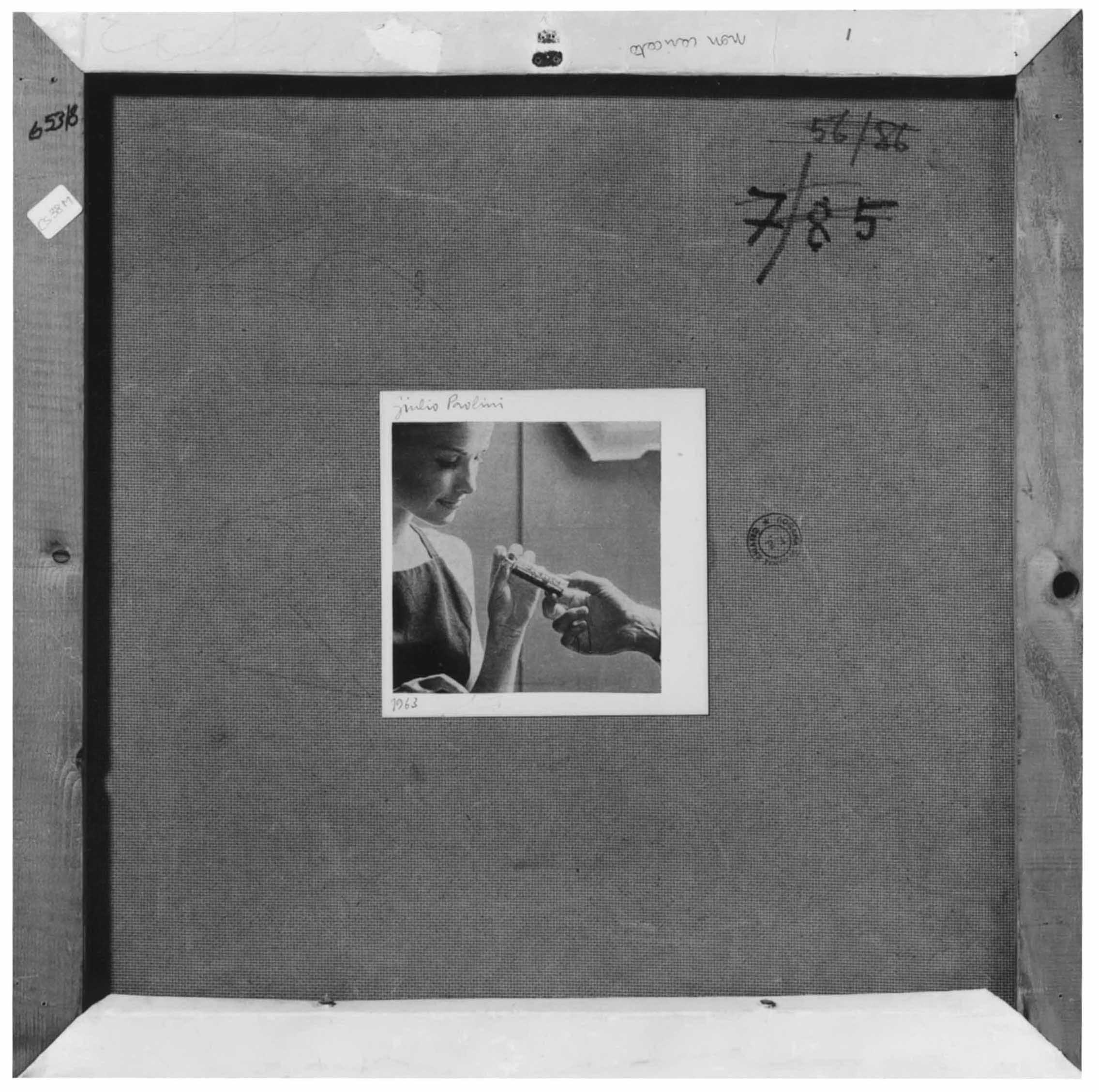 Signed and dated on the verso on a white paper square: “Giulio Paolini” (upper left), “1963” (lower left)