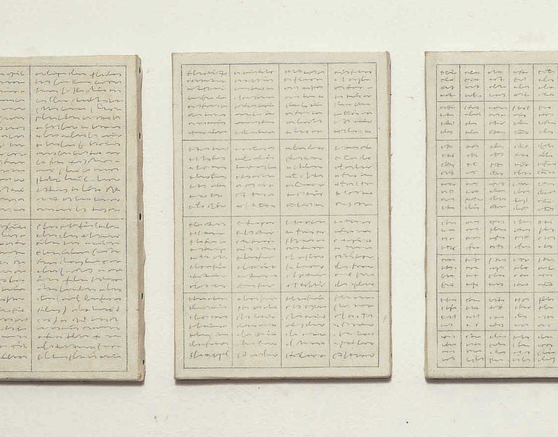 In the artist's own words: “Hence, three elements: the writing, the image, time. Each of them, however, is exhausted in its own nominal enunciation and, all together, they cannot be seen as constitutive. Writing, overlooking any form of communication, preserves nothing other than its appearance, it describes nothing other than itself. The drawing is the extreme limit of its own legitimacy, the definition of the surface of the page. Time suggests the pattern and determines, via the succession of the two elements that reveal it, the enigmatic measure of the story: it subtracts further truthfulness from both the writing and the drawing, it regulates their co-penetration in a constantly variable identity, multipliable to infinity, but unalterable by fate. The first page is already the last one, the last one is still the first, the sequence moves from one equal towards an equal. Here, then, is the neutrality of a dynamic that, again via the use of the same elements, achieves none other than its own infinitesimal development. The title Ennesima [Umpteenth], in fact, is meant to recall the possibility of elevation ad infinitum of this process. As if to say that it is perhaps not so obvious to establish that the figurative, visual dimension, is born as a pure and simple image, and that it may instead have the implicit and intimate need to describe itself, the vocation to find another more definitive form of itself”.1