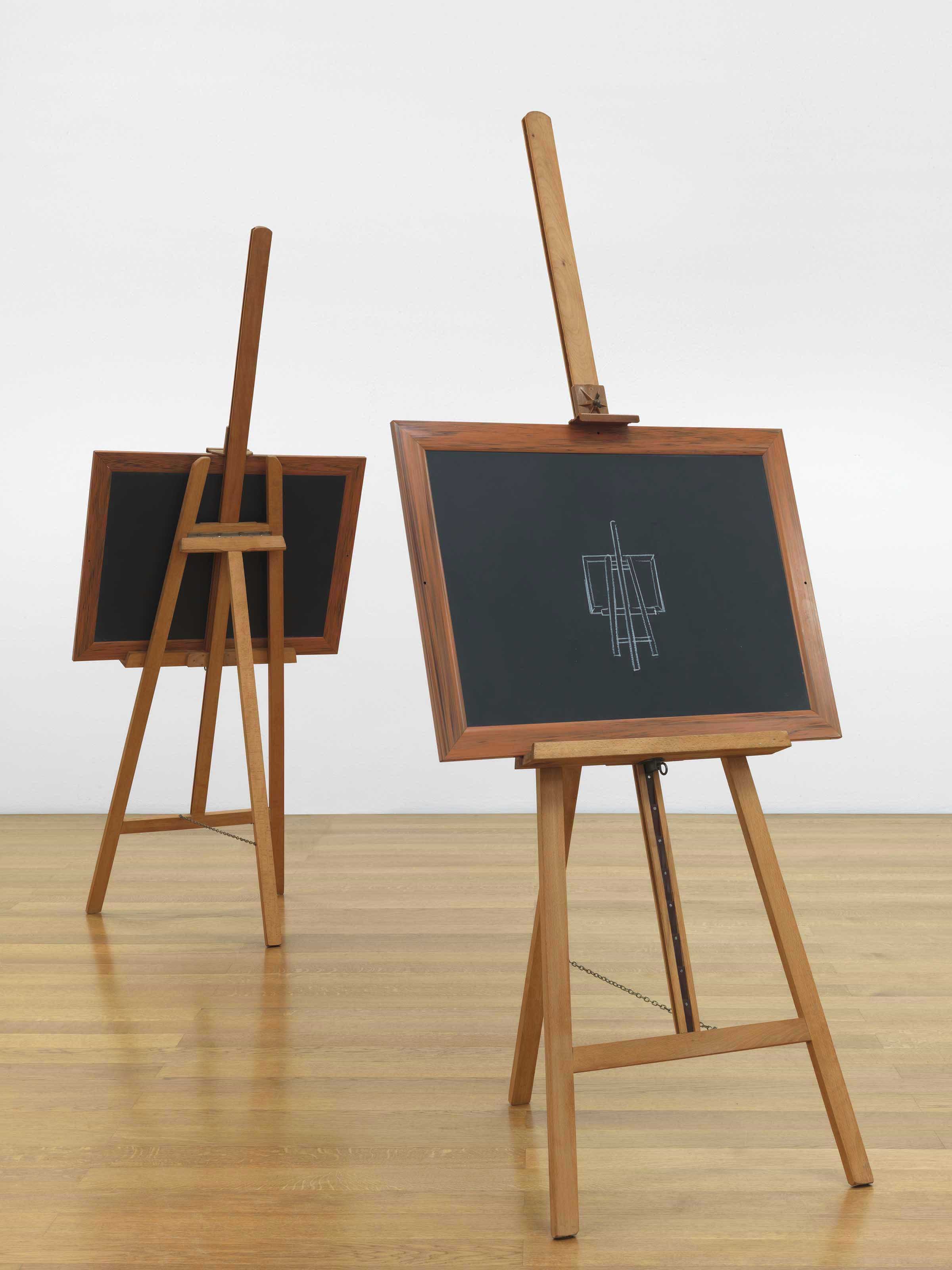 Chalk on blackboard, easels