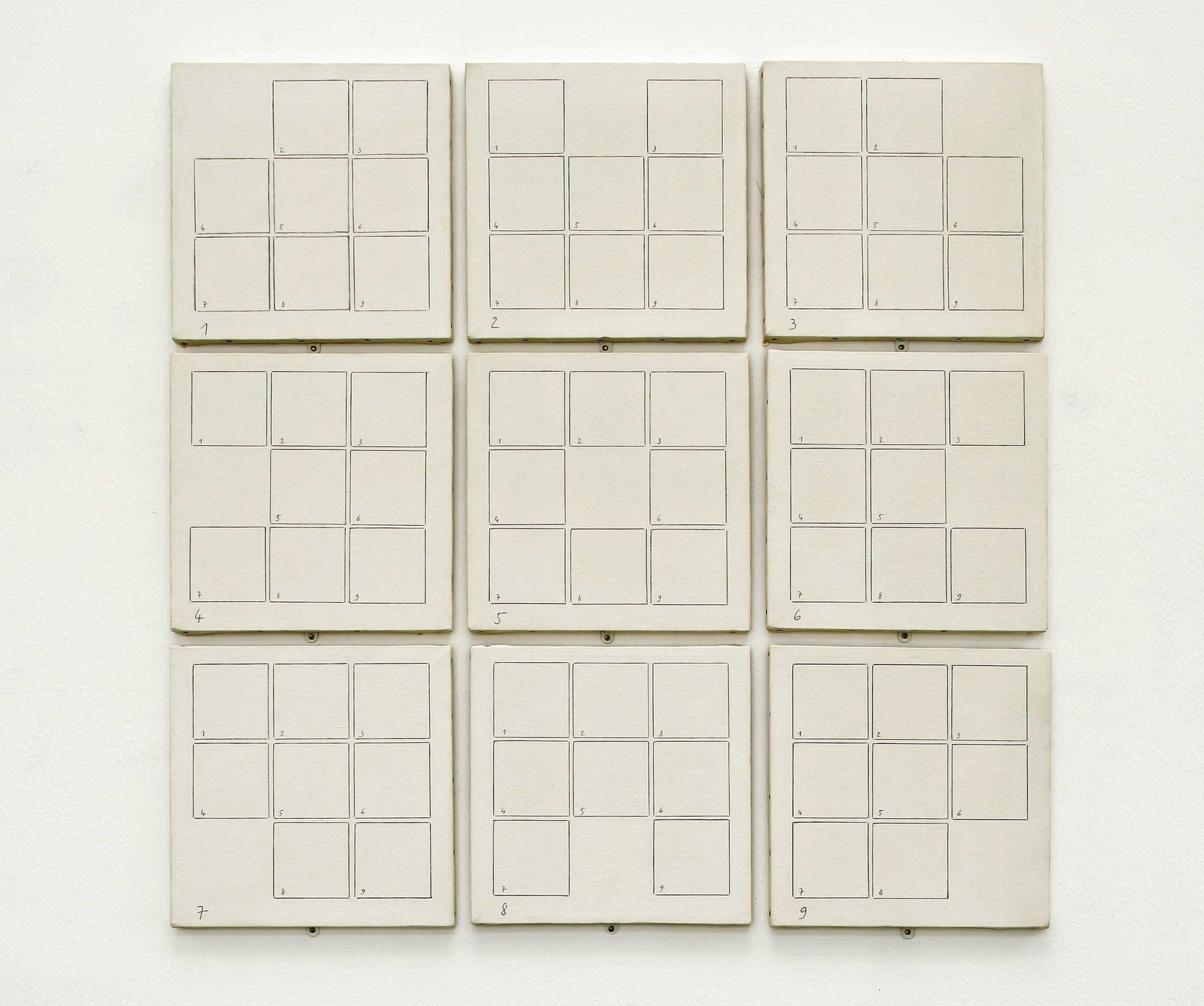 Nine parts 30 x 30 cm each, overall dimensions 94 x 94 cm