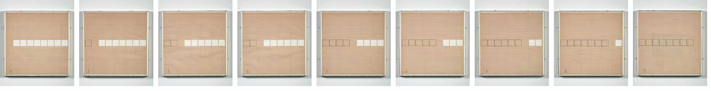Nine framed parts 31.5 x 31.5 cm each, overall dimensions 31.5 x 297 cm