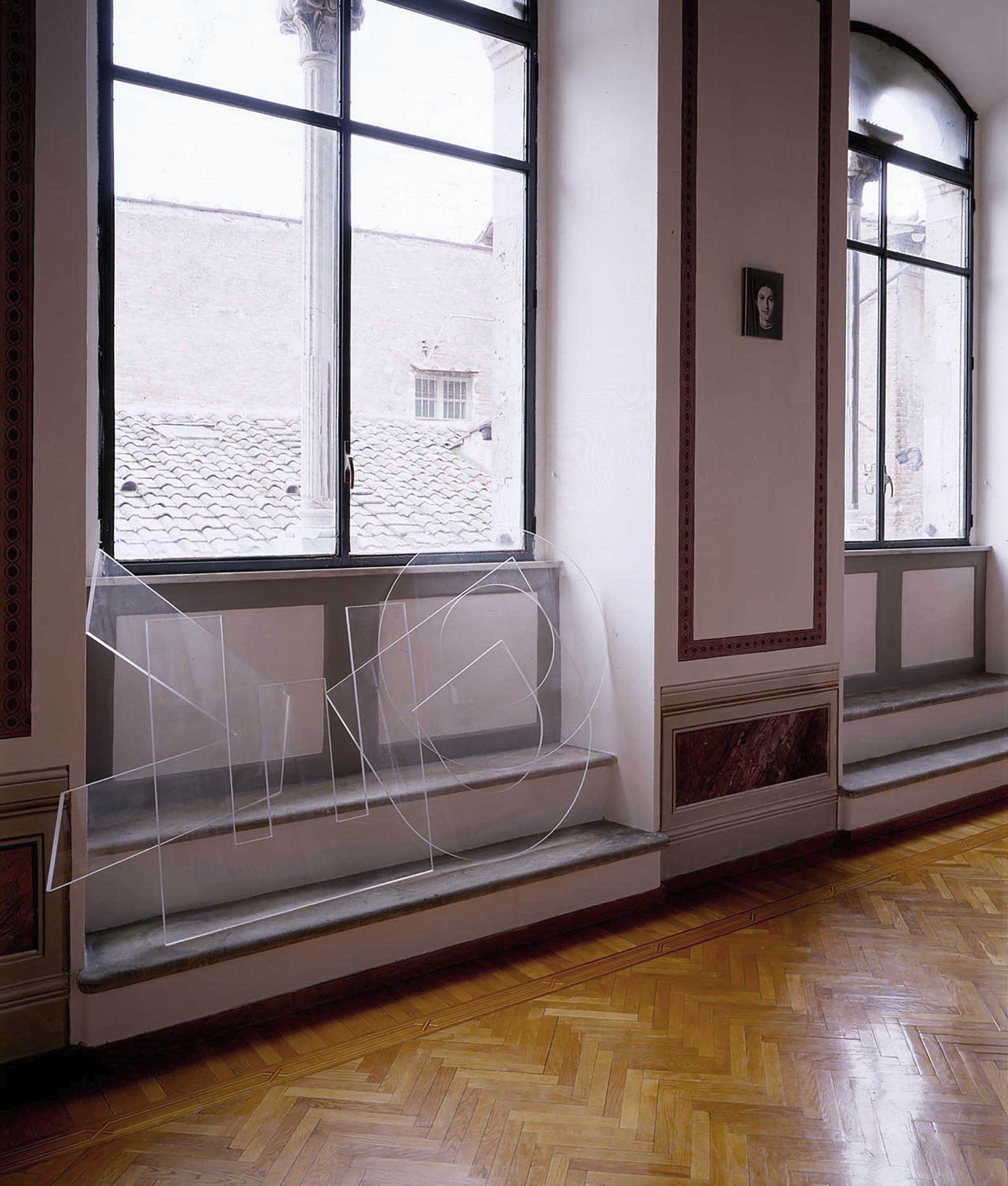 In 2007 in Rovereto the artist instead arranged the letters so that they corresponded to the four corners of the exhibition space, along with Qui (GPO-0546), in a central position on the ground, and Lo spazio (GPO-0120), mounted on the four walls of the room.