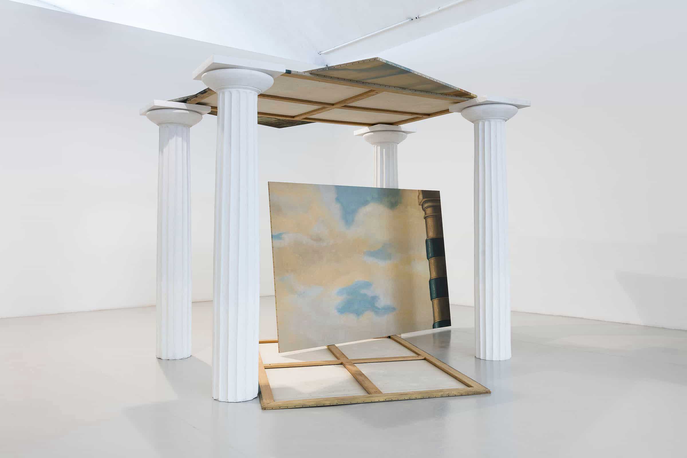 The fourth work in the cycle involves four details from the eighteenth-century painting (from the third to the sixth, as the title tells us), installed between the same number of plaster columns which overall simulate a sort of pavilion, similar to the one delimited by four columns in the painting. Two canvases – corresponding to the third and the fourth detail of the original painting – are respectively located next to a column and on the ground in an upside down position, while the other two are situated on top of the columns and turned one upwards (sixth detail) and the other downwards (fifth detail).