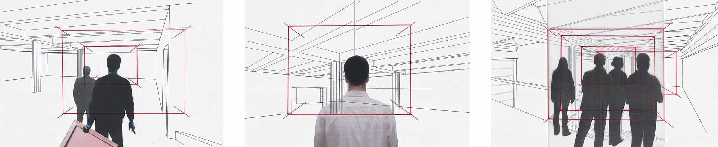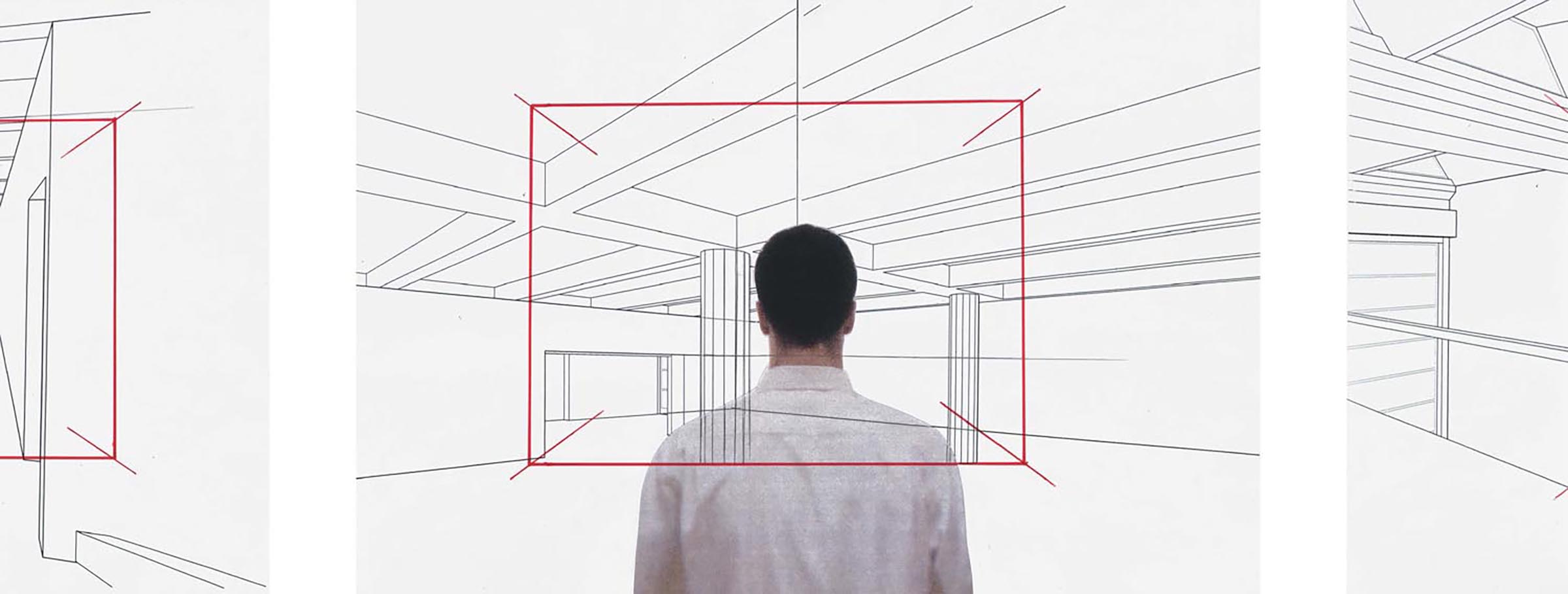 Matita, inchiostro rosso, riproduzione su carta da lucido e collage su carta