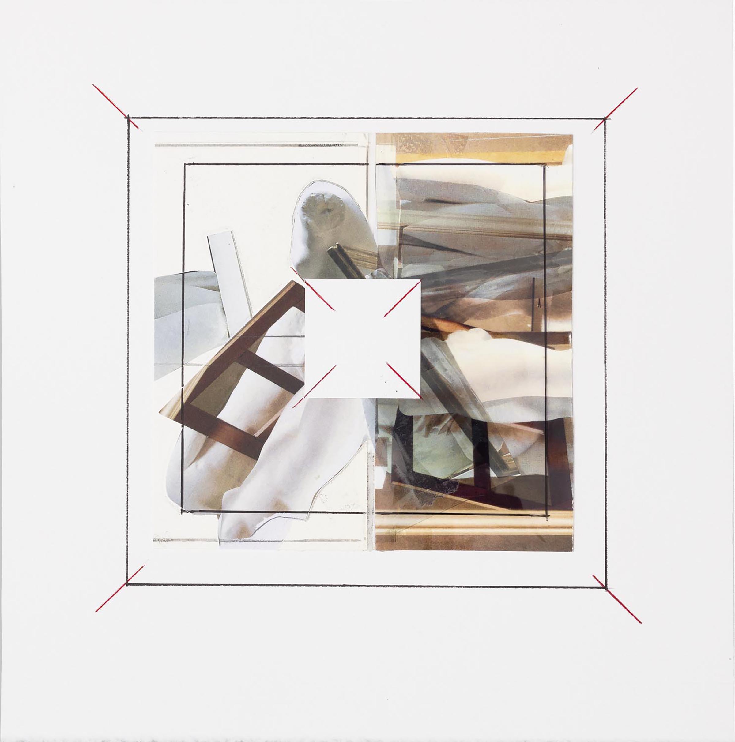Matita, inchiostro rosso, inchiostro nero e collage su carta