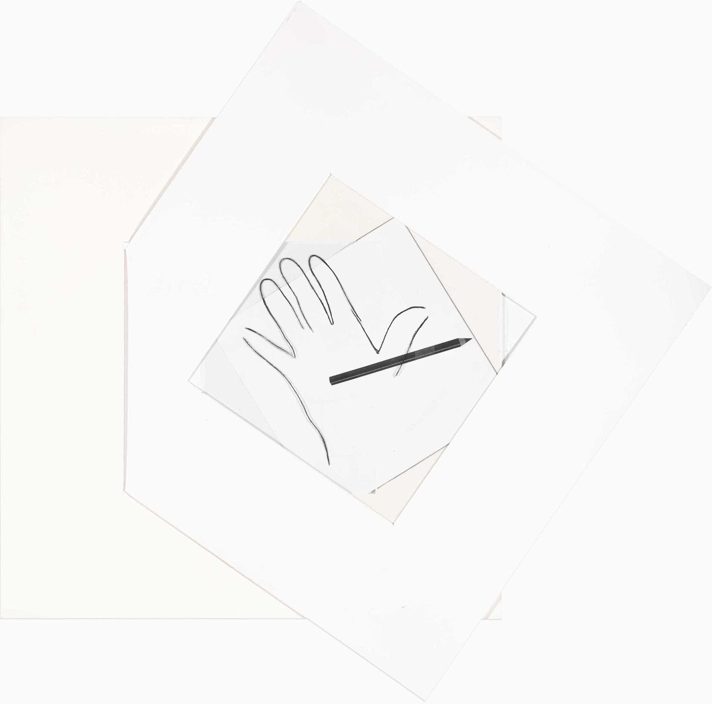 Matita, riproduzione su acetato e collage su carta
