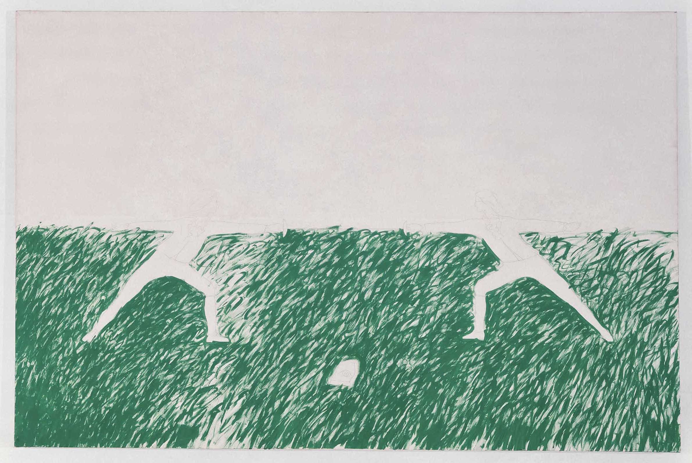 La scena delineata a matita nella parte inferiore del quadro, campita a tempera verde, raffigura Elegia (1969, GPO-0196) come oggetto di contesa (o nel ruolo di “arbitro”) fra due duellanti con le sembianze dell’artista.