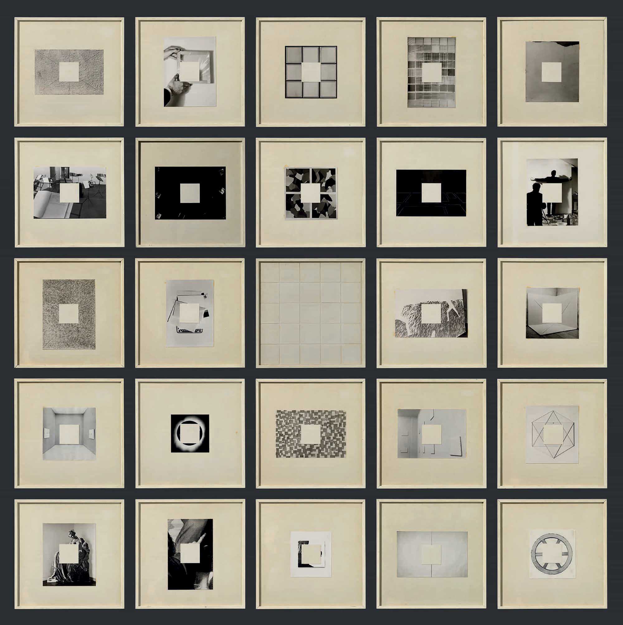 Venticinque elementi incorniciati 38 x 38 cm ciascuno, misure complessive 200 x 200 cm